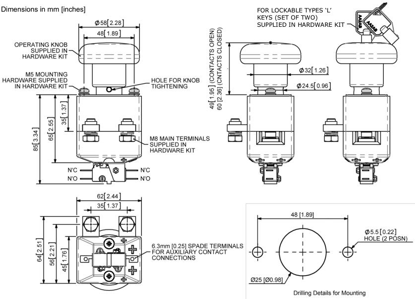 ED300是一种手动操作设备,具有偏心弹簧机构,可为主触点的打开和关闭提供快速动作。ED300易于安装(参见钻孔细节),并使用附带的M5 posidrive安装螺丝进行固定。可锁定的版本具有一个按钮,该按钮是将旋钮从“关”位置移动到“开”位置所必需的。一旦进入“开”位置,钥匙可以被移除。此后,旋钮可以被按下到“Off”位置,在该位置它将自动锁定并保持锁定直到钥匙再次被用于解锁。ED300完全可以使用,并提供原装备件。